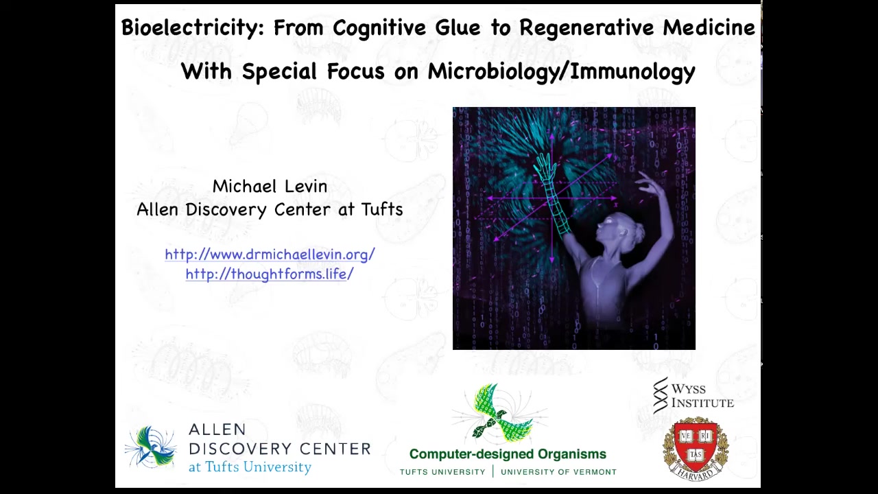 Thank you for that introduction, and thank you for the opportunity to share some thoughts with you. Today, I will give a talk on bioelectricity with a specific focus, although we don't generally focus on microbiology or immunology in our group. We've done work in those areas, and I think this may be of special interest to this audience.