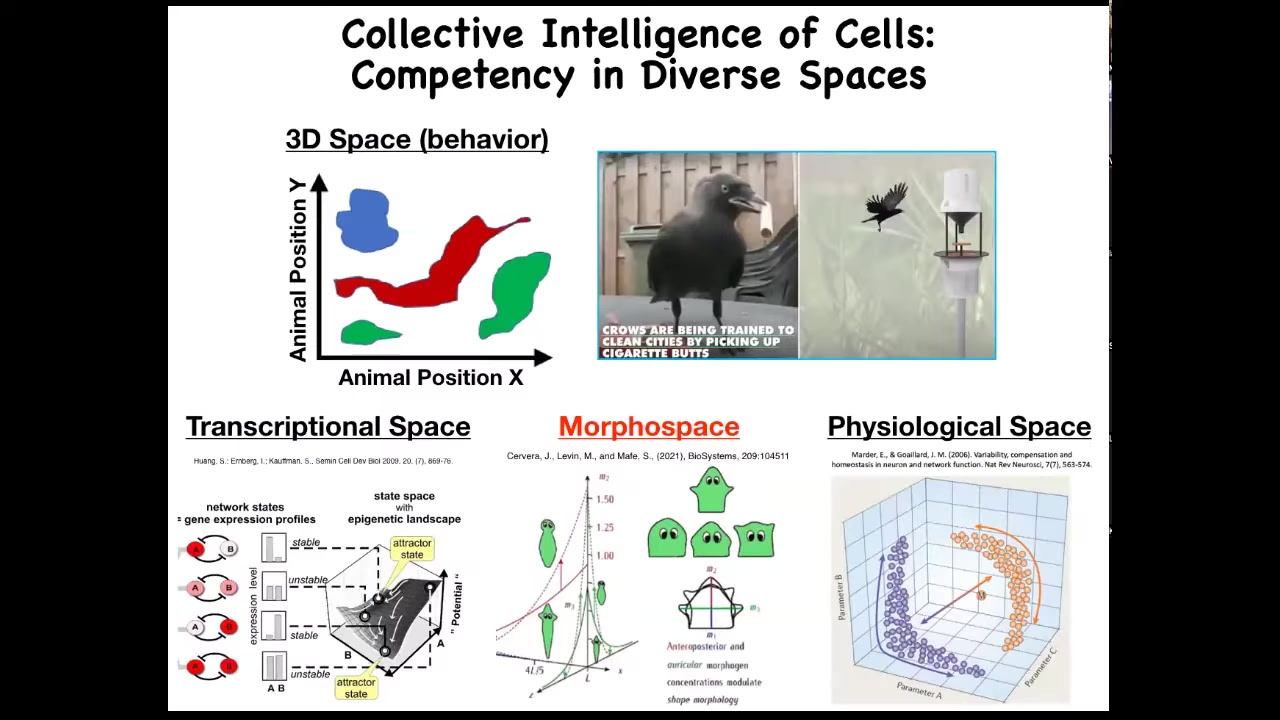 But there are all these other problem spaces in which various agents live and navigate. There's the space of possible gene expressions, very high dimensional space. There's the space of anatomical configurations of the body, and then, of course, physiological space. We're going to spend most of our time talking about anatomical amorphous space.