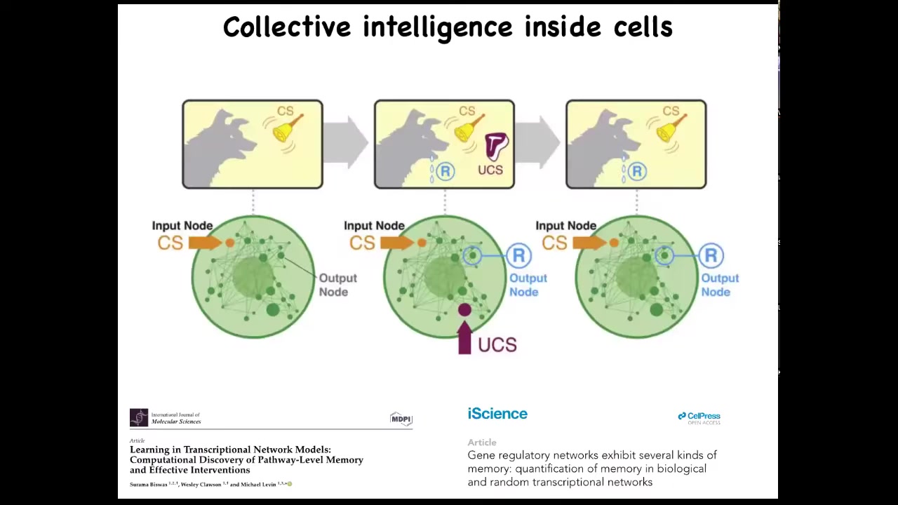 And this is long before you get to brains or anything like that. We find out that even subcellular components, that individual cells are already a collective intelligence themselves because they have molecular pathways and gene regulatory networks. These molecular networks are themselves a kind of learning agent. They have six different kinds of memory that they can muster, including Pavlovian conditioning. And that's before you even get to the level of a single cell. So it's this multi-scale architecture of agents with really interesting properties that we want to take advantage of.