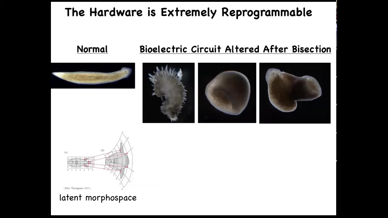 Think about the role of the genome here. If I were to ask you where the number of heads in the planarian is encoded, and you said it was in the genome, you'd be wrong. What the genome does encode is hardware that by default starts out encoding the state that says one head. But it's not determined, it's not nailed down by the hardware because you can change it. You can change it in situ without changing any of the genetics. That's the tip of the iceberg of information here that's generated physiologically in that hardware.