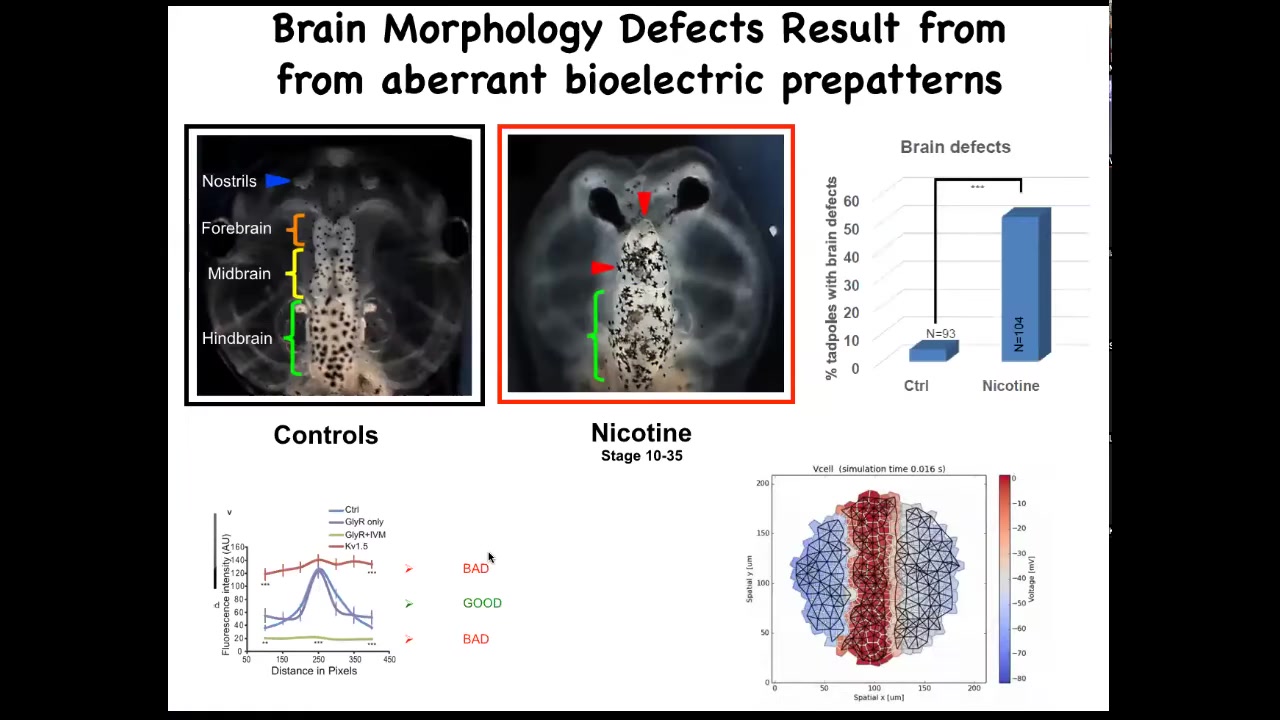 The thing about this bioelectric pattern is that it has this very characteristic bell curve shape, and flattening it out either up here or down here both has the same effect. It gives you terrible brain defects. It's very important that this particular shape in the electrical pattern be there.