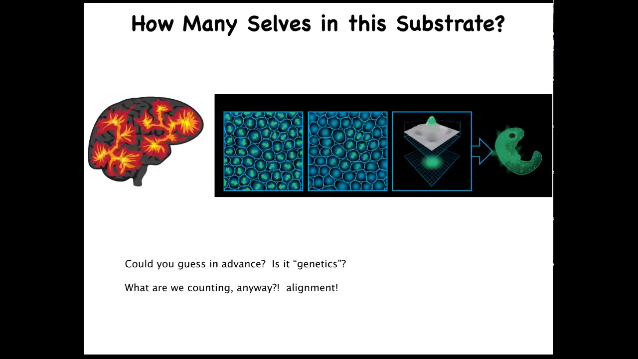 This means that when you look at one embryo, the question of how many cells or how many individuals are in there is not fixed by the genetics. It might be zero, it might be one, it's usually one, but it might be up to half a dozen, depending on what these cells decide to do and how the collectivity works.
