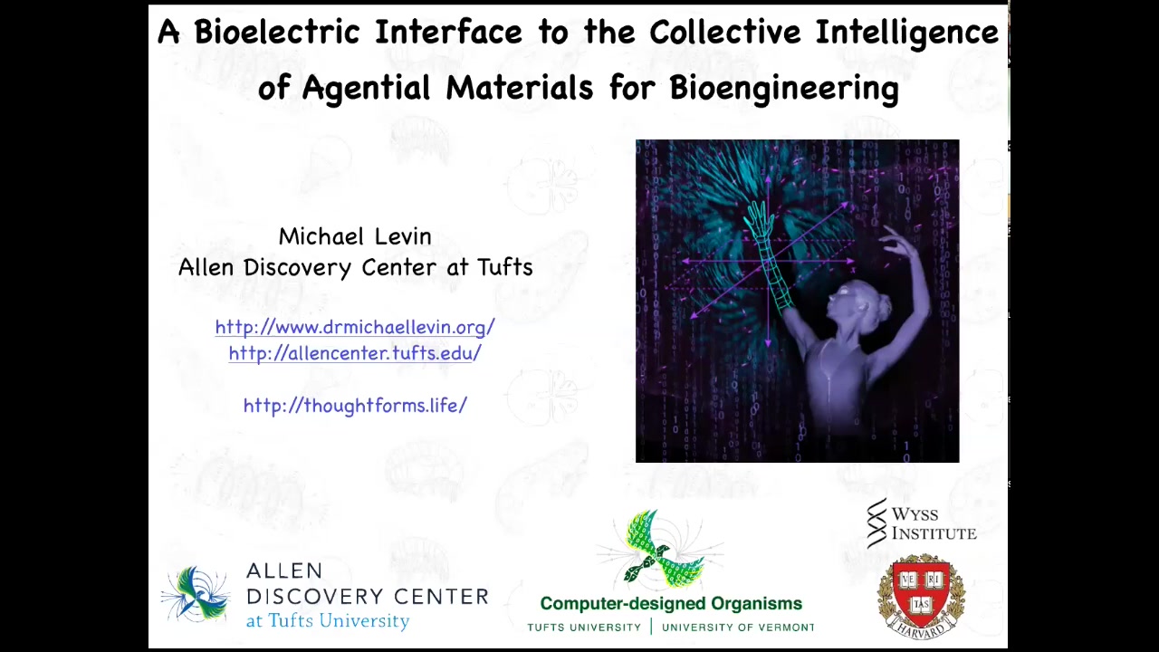 I'm going to talk about a set of mechanisms which are endogenous bioelectrical networks, and they're becoming a highly tractable interface for top-down control of behavior of this collective intelligence. The tools are now coming online to read and write pattern memories into this protocognitive medium.