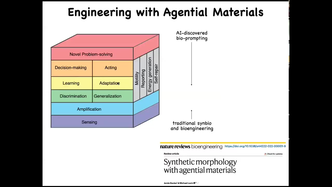 And one idea that is relevant here is the notion of having an impedance match between the technique that you're using, the intervention, and the target that you're reprogramming. So up till now, we mostly use drugs, we use various materials, and those are pretty low agency interventions. But could we design higher agency interventions to really match the agency of the material that we're trying to deal with? But I want to show you what I think of as a promising platform in the future.