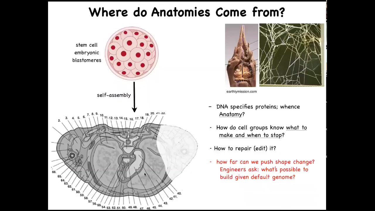 Why do we need it? Besides the foundational issues of evolution and computation and so on, this is an incredibly practical problem because if we had something like this, if we had a way to convince cells to build whatever we wanted them to build: birth defects, traumatic injury, cancer, aging, degenerative disease — all of these problems would go away. Bio-robotics would take off. This is central. Our failure to communicate goals to groups of cells is responsible for a huge part of the unmet need of biomedicine.