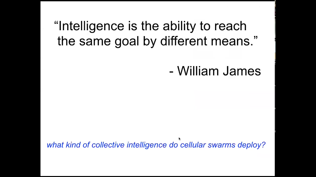 For the next few minutes, let's talk about what kind of intelligence do cells deploy? What problems do they solve? When I say that groups of cells are a collective intelligence, what do I mean? Here's one example.