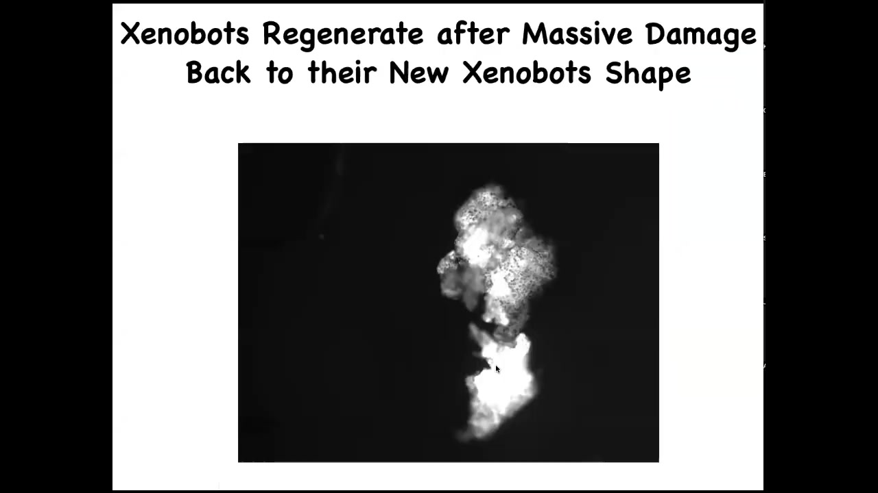 And because they're working with an agential material too, just like we were when we made the Zenobots, these little piles become the next generation of bots. They mature and they go on and they do exactly the same thing. And so you have a kinematic replication. They're making copies of themselves from stuff they find in the environment. This is von Neumann's dream, a robot that finds materials and makes copies of itself. So that leads to an interesting engineering question, which is, what did the hardware learn during evolution?