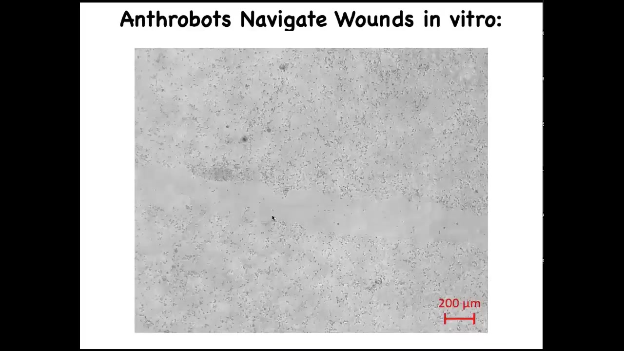 What it's doing is traversing this scratch that we made. This stuff out here is iPS-derived human neural cells. This lawn of neurons—we put a scratch through it. This is a wound assay where you ask what happens if you damage a bunch of these nerves. You saw that the Anthrobot navigates.