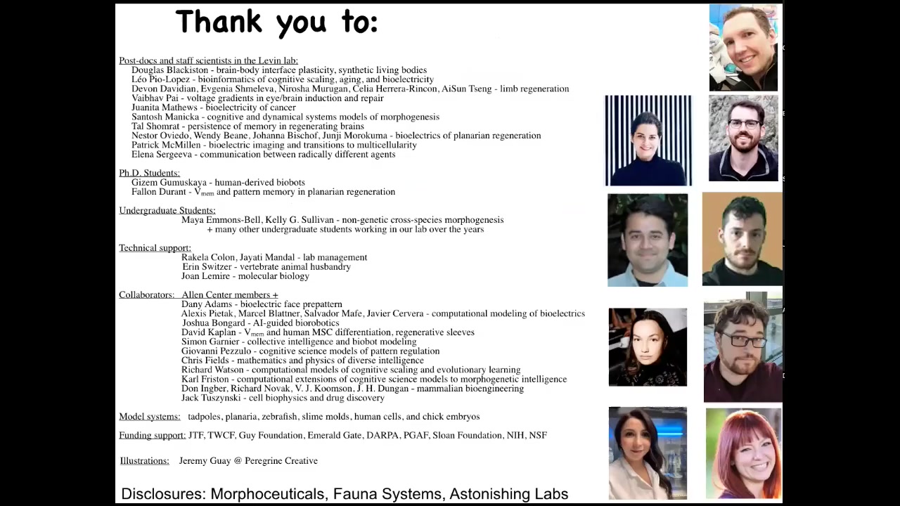 If you want to follow up on any of the specific details, all the peer-reviewed stuff is here. There are some more diverse thoughts in this blog, and you can always find me at michael.levin@tufts.edu.