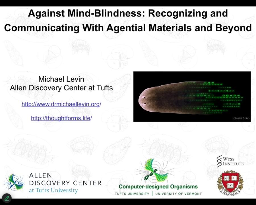 This is a 1 hour 11 minute talk by me called "Against Mind-Blindness: recognizing and communicating with Agential Materials and Beyond". It is a slightly longer, updated version of this talk from last month, containing a bit of new material and a somewhat differently-ordered presentation.