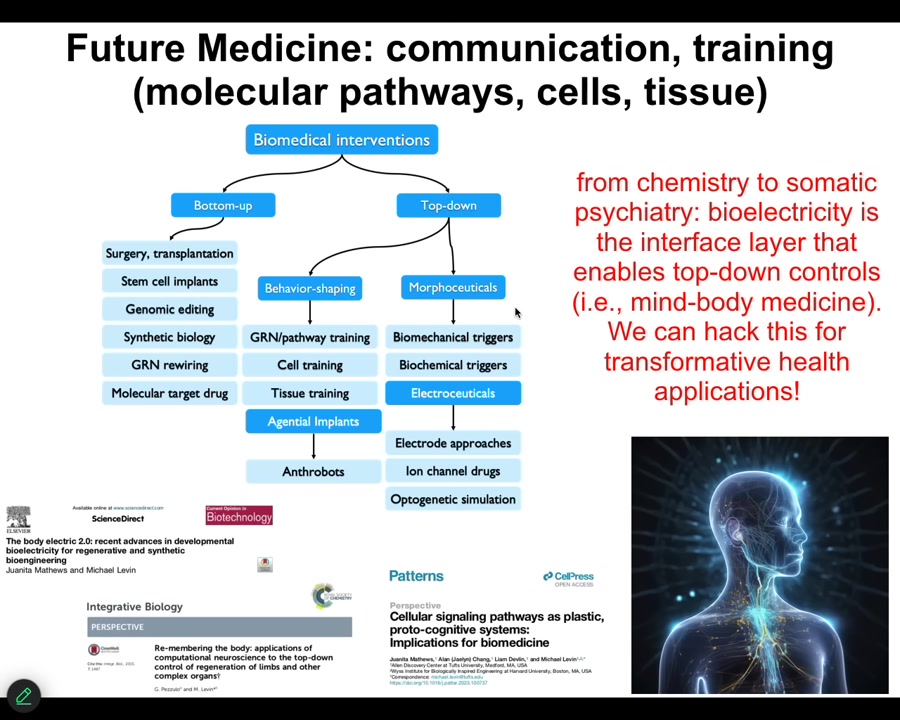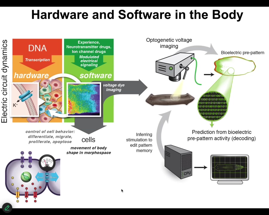 We're going to pivot neuroscience. It's exactly what brains do in three-dimensional space, by integrating a bunch of cells using electrical signaling among cells to navigate three-dimensional space. We're going to show what this evolved from, which was cellular swarms navigating anatomical space.