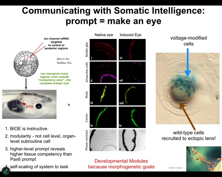 Let's talk quickly about what kind of intelligence these systems can deploy in anatomical space. And the reason we're going into this is that it's a good example. It's one of the few examples we have that's a stepping stone between the kind of intelligence that we already understand and we know how to deal with. We understand some of the mechanisms that are involved. And it helps us to see what happens when that gets pivoted, even a little bit. It becomes very hard. Most people do not, and certainly most of the textbooks do not think of morphogenesis as a cognitive task, but in fact it is.