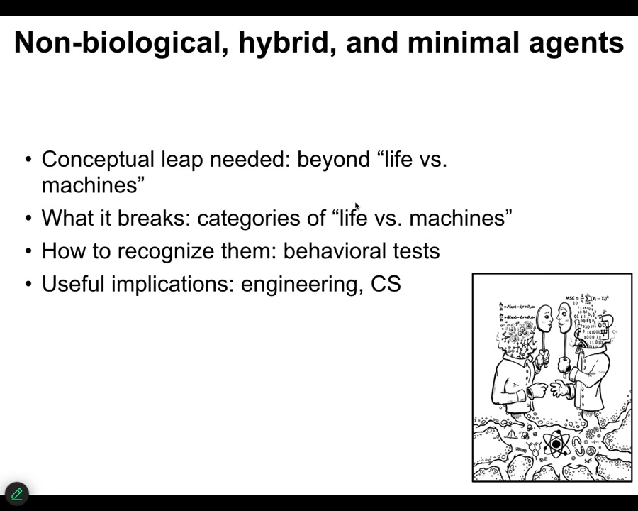 And so just a couple of final things that I want to bring to this. First is this notion that as weird as all of this is, I'm talking about cyborgs and hybrots and AIs and so on, they all have one conventional thing in common. They're embodied. They have a physical body. And I just want to point out that things are, even that's too limiting.