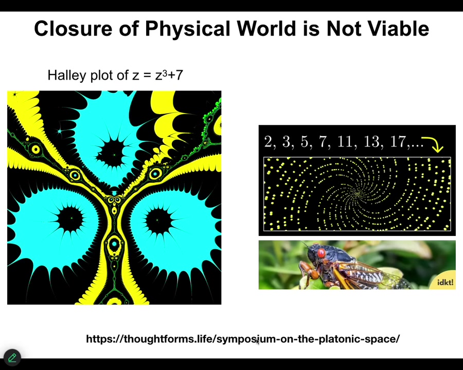 So what we're now understanding is that the closure of the physical world, this model that everything we need to understand comes from either physics or genetics, I think is not viable. We have to now understand that there are patterns that come from another source, for example, mathematical patterns.