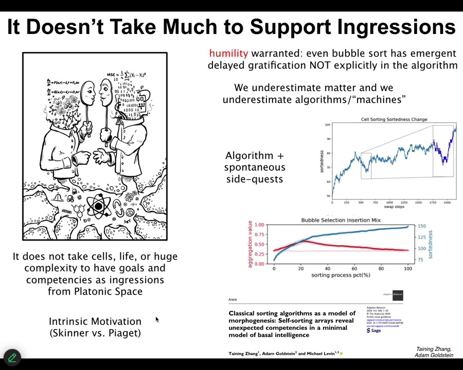 We expanded on this. Chris Fields and I wrote "On the Symmetry of Thoughts and Thinkers, The Symmetry of Objects and Processes." We've gotten now even stranger: we've gotten brains, and then we got to non-brainy bioelectricity, and agents that navigate morphogenetic space. And then we said, you don't even have to be biological, and here are the things that apply to agents more broadly. And now I'm saying you don't even have to be a physical object as such; you can be a pattern within some other medium.