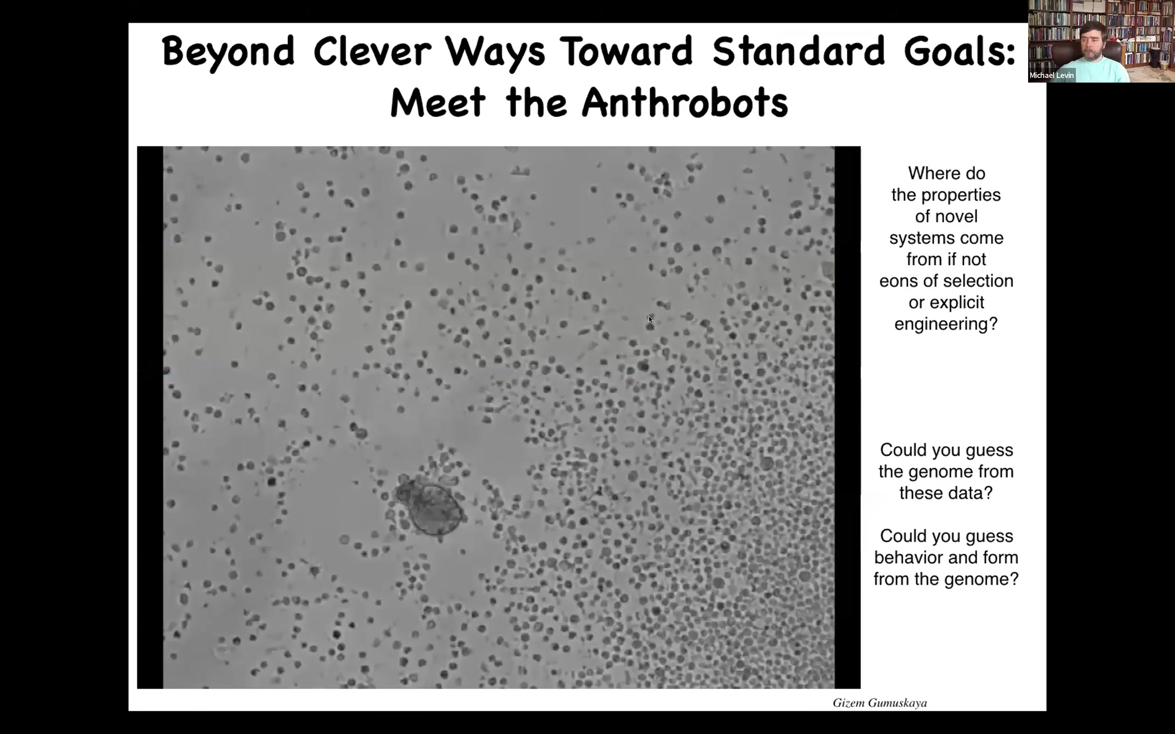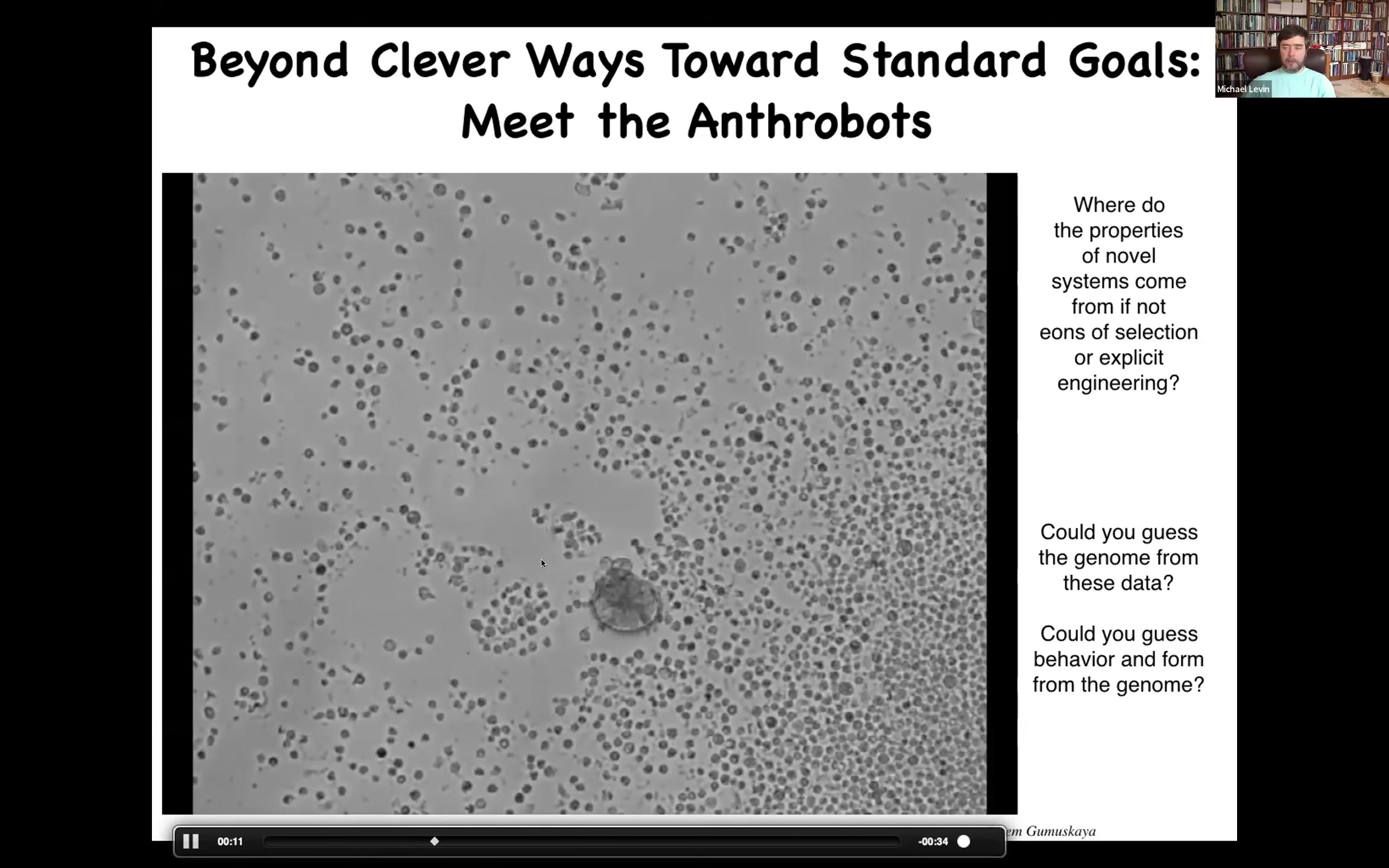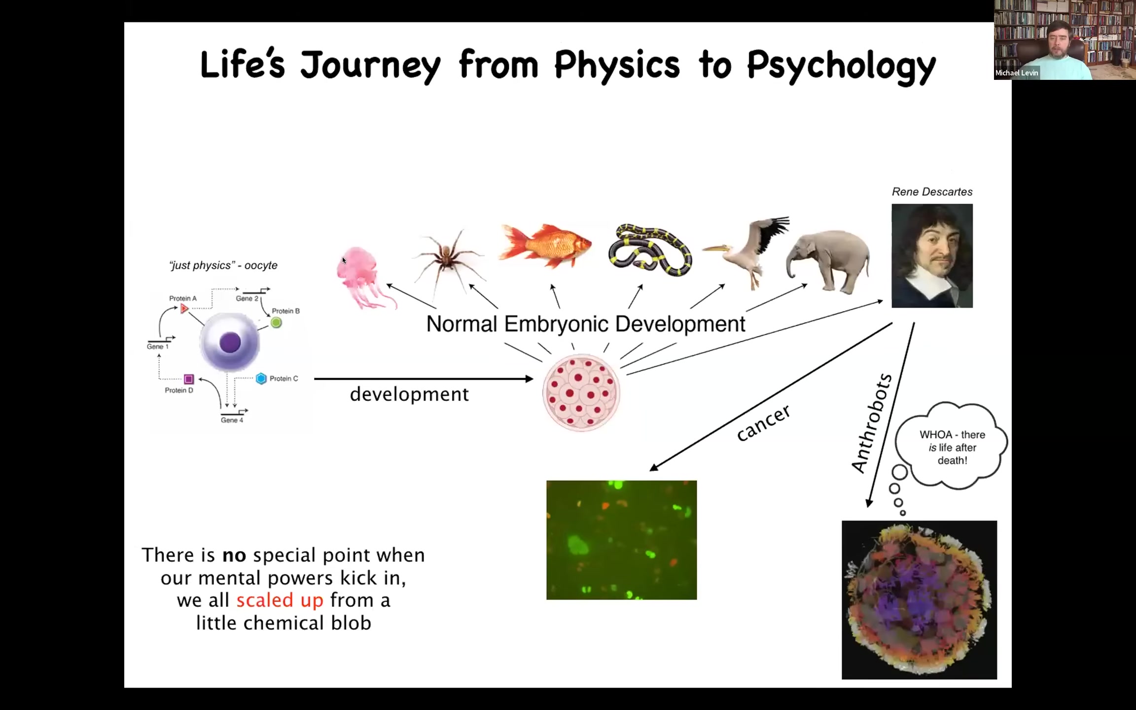 One thing developmental biology shows us is that there is no magic bright line at which physics ticks over to psychology. It's a continuous, gradual process. It's important to be able to understand that process. This is not the end of the road because there are other processes that can happen afterwards, including a dissociative disorder known as cancer. Other very strange things, after the death of the body, your cells continuing their life in a totally novel embodiment, such as these anthrobots.