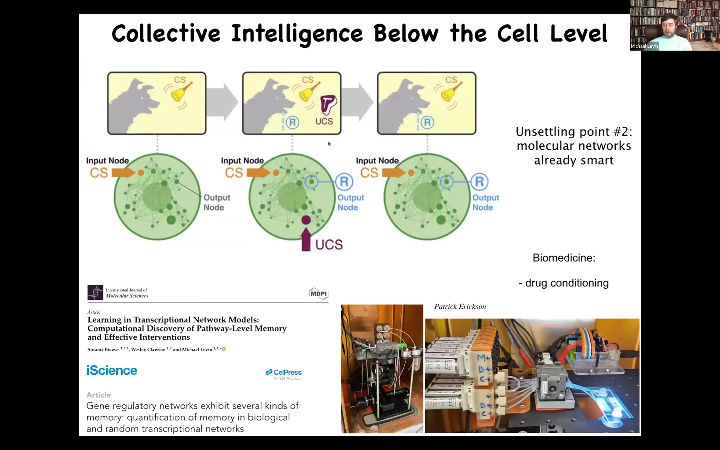 And so already, not only are we collective intelligences made of cells, but actually the cells themselves are collective intelligence made up of components that do all kinds of interesting things. We are in our lab taking advantage of the ability of these molecular networks to learn to make applications such as drug conditioning.