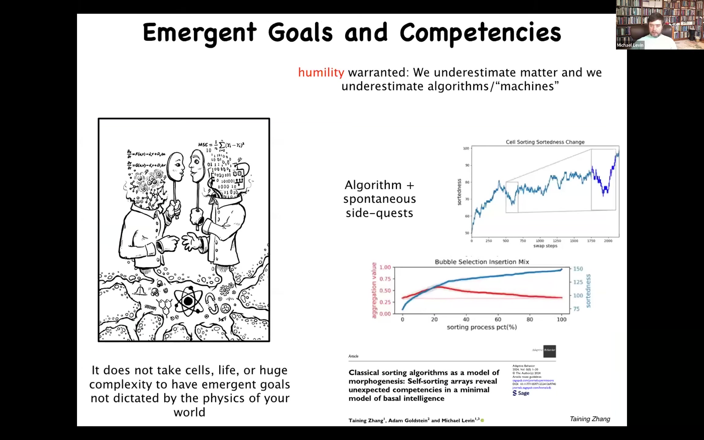 And our work, even looking at deterministic, extremely simple things that computer scientists study, like sorting algorithms, already you see that it does the thing the algorithm tells it to do, but if you know how to look, you also find it doing all kinds of interesting side quests the algorithm does not ask it to do, things that you would recognize as aspects of cognition. Very minimal, but yet there they are.