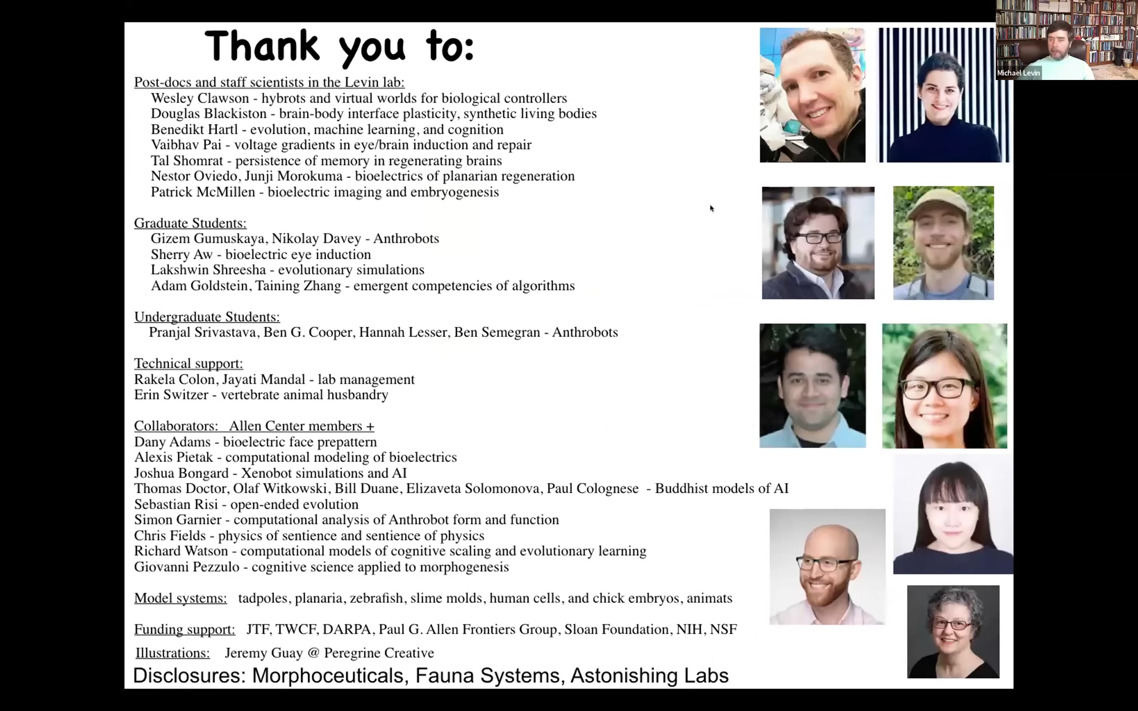 I'm going to end here and thank the people who did the work that I showed you. Here's some postdocs and students and collaborators in our lab. Disclosures: there are three companies that have spun off from the work that we do. I thank our funders and the model systems because they've done the most hard work in teaching us about this stuff. Thank you so much. I'll stop here.
