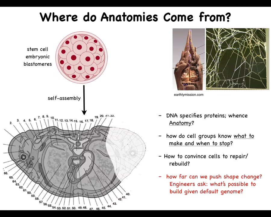 We need to understand what the software layer here is. How do the cells know what to make? How do they know when to stop? If something is missing or damaged, how do we convince them to repair and rebuild? As engineers, we would also like to know what else is possible. They build this, and what else can we get the exact same cells to build?