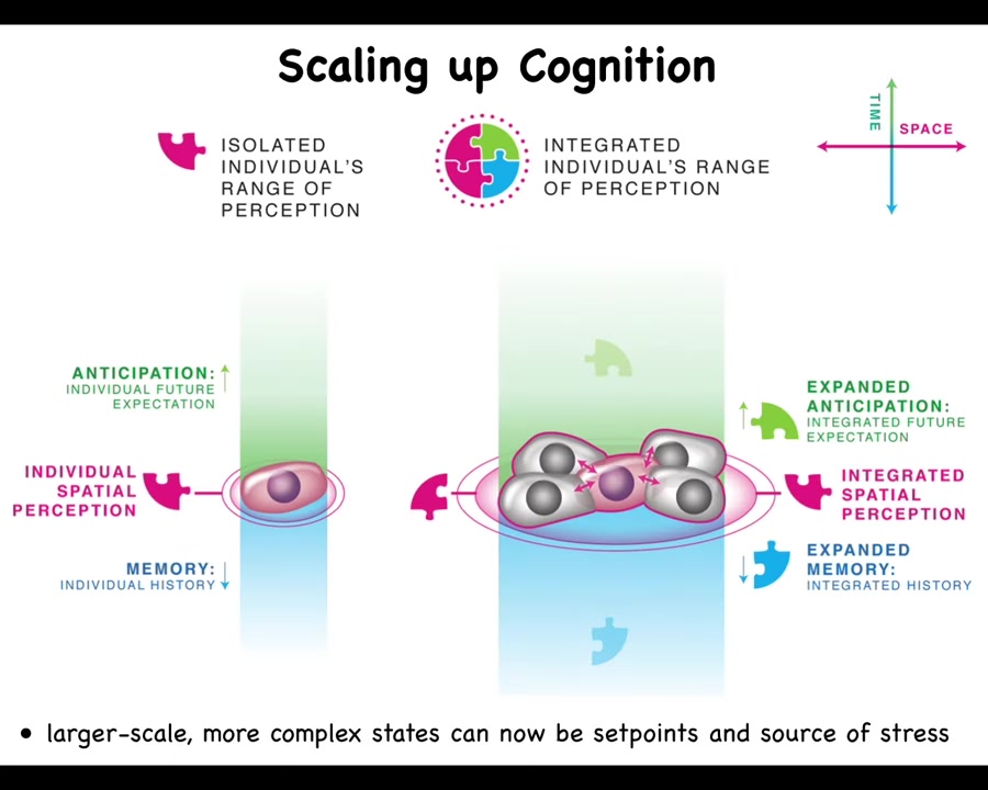 This is what we've been working on for some years as a model system. Collective intelligence of groups of cells as a model system for scaling up the competencies of individual subunits into something greater that operates in a new space. This is fundamentally a problem of cognition and collective intelligence.