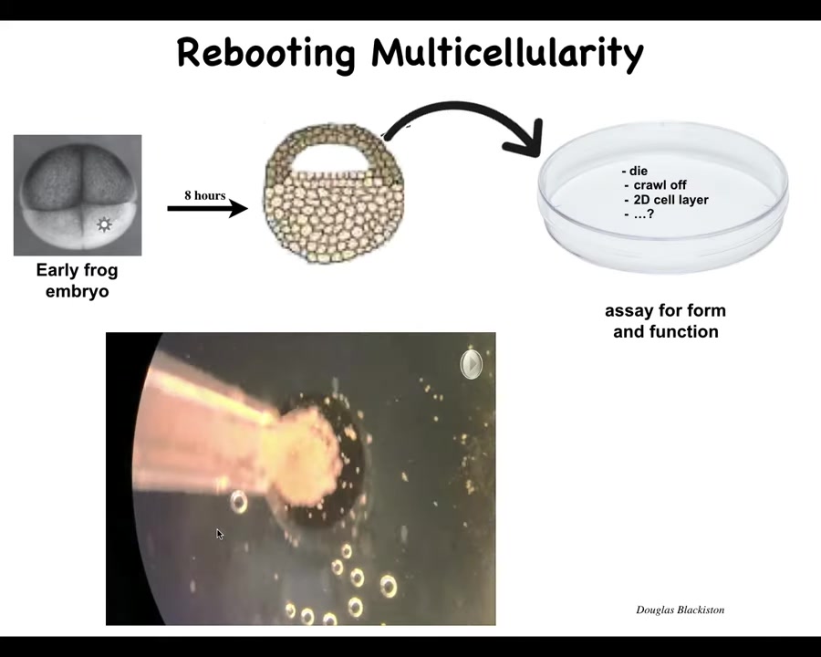 This is work largely spearheaded by Doug Blackiston in my group, in our collaboration with Josh Bongard's lab in our Institute for Computationally Designed Organisms, where we wanted to know, could we use cells liberated from their normal context, the embryo? Could they reboot multicellularity? What would they want to build?