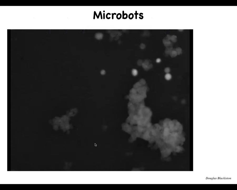 The first thing that happens is we call these microbots. Each one of these is an individual cell. And this little thing that remarkably looks like a little horse is one of many examples where they get together. They have these interesting movements. They start interacting with each other. There's that calcium flash. This thing is skipping along in the Petri dish. And there's all kinds of little structures.