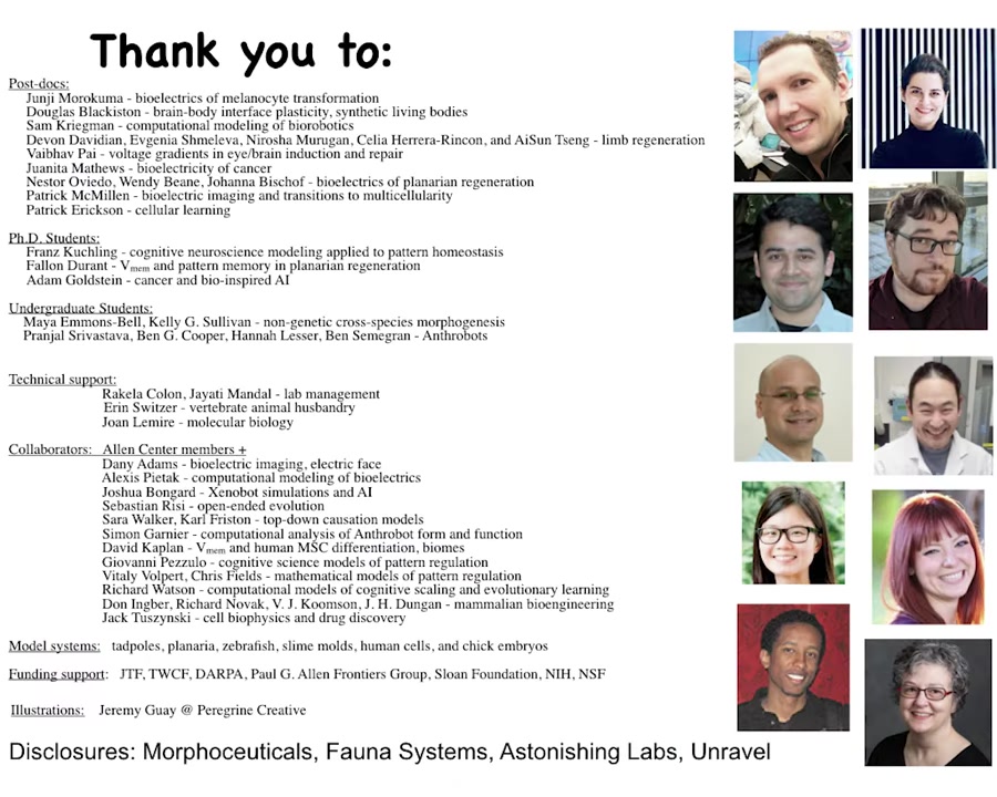 Thank you. I appreciate the opportunity to share some ideas with you all. What I'm going to talk about today is this notion of an agential material for bioengineering. We will talk about bioelectric mechanisms. But the important part of this talk is not so much the fact of this biophysical mechanism, but what it tells us about information processing and, in particular, diverse intelligence that goes all the way down to the biological material. If you want to download any of the papers, the datasets, the software — all the things I talk about are here at this website.
