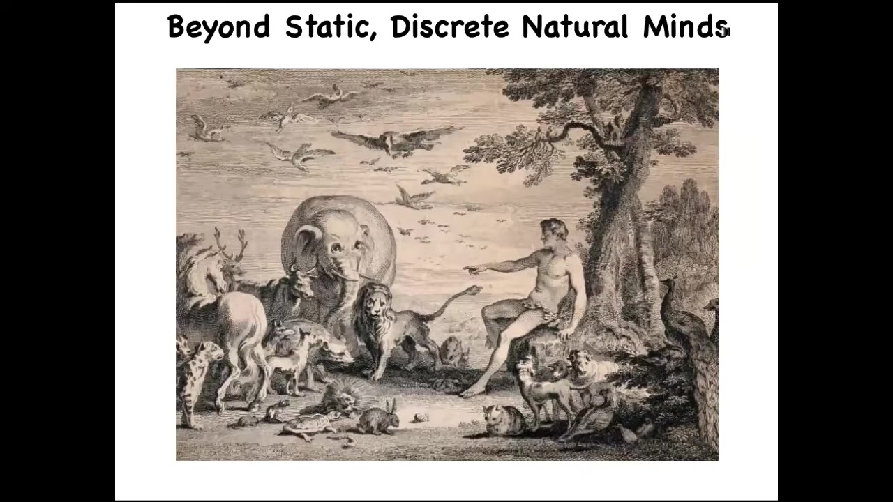One place that we might start is with this kind of old image. This is Adam naming the animals in the Garden of Eden. There are two things here that are important. One is that there are a set of discrete natural kinds that are meant to be individual, specific kinds of agents. And then here's Adam, and he's different from the others. One of his roles is to name the other animals. This, as you'll see at the end of the talk, is very profound because naming something is to discover its true nature, and it's going to be on us to discover the true nature of some very unconventional beings that have never been here before in the tree of life.