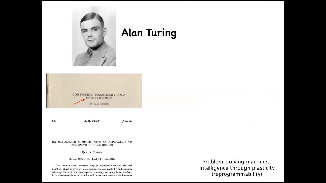 But let's talk about the anatomical morphospace. I find it really interesting that Alan Turing, who was the forefather of a lot of ideas in artificial intelligence, thought about computation, minds embodied in different types of media, and specifically reprogrammability, the issue of problem-solving machines and intelligence through plasticity. What does it mean to program or reprogram a machine?