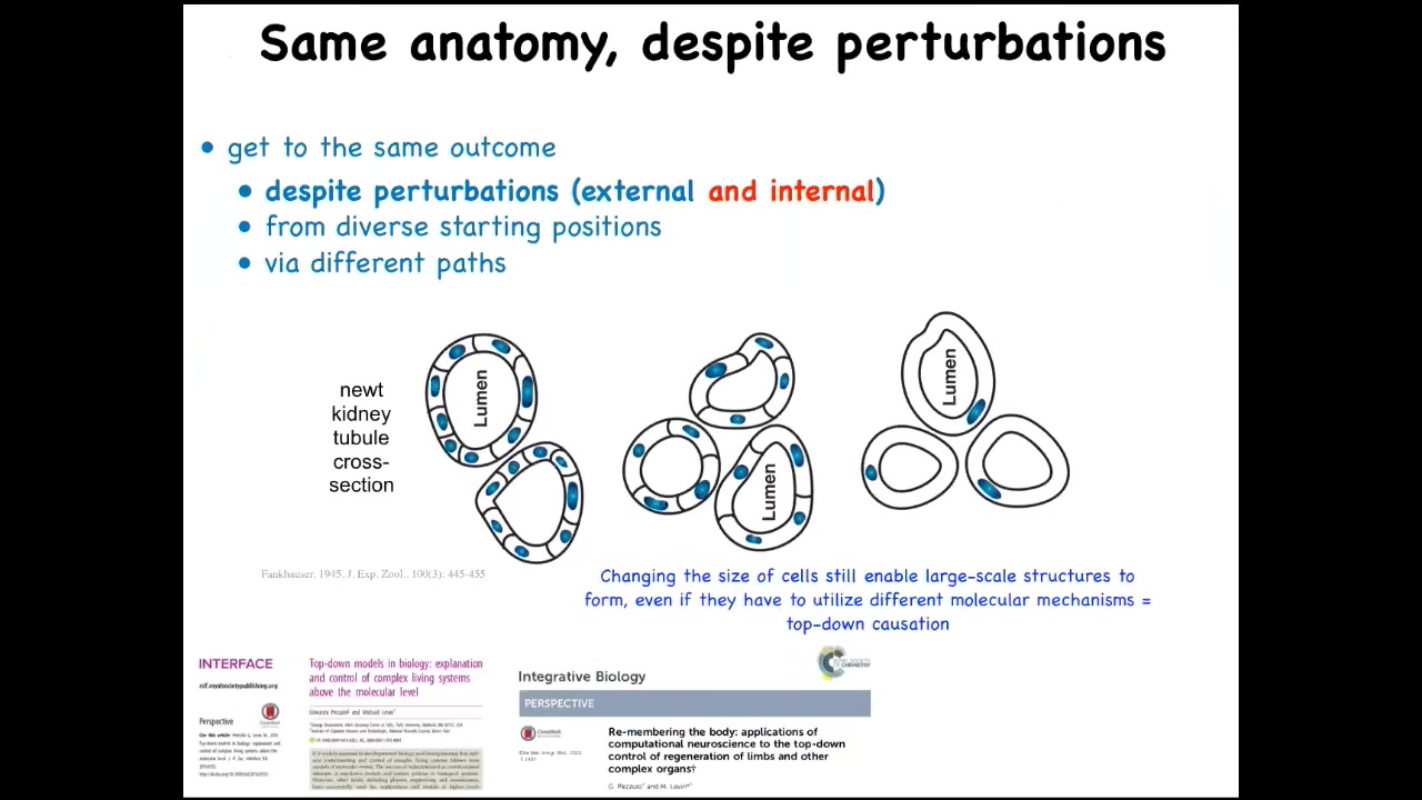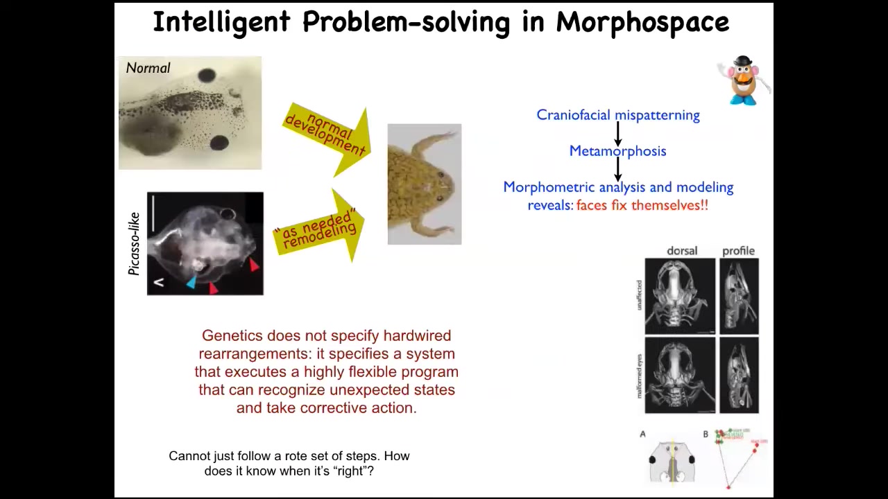 This is not injury. This is not something that normally happens to these animals. This is not the typical kind of regeneration, but it is a response to a kind of injury at a larger scale, which is evolutionary change, mutation. For this reason, I think that one thing that evolution really does is make problem-solving agents. I don't think it makes solutions to specific environments because it commits from the very beginning to the fact that everything is going to change and you cannot overtrain on the priors of past generations. This kind of problem-solving capacity is everywhere.