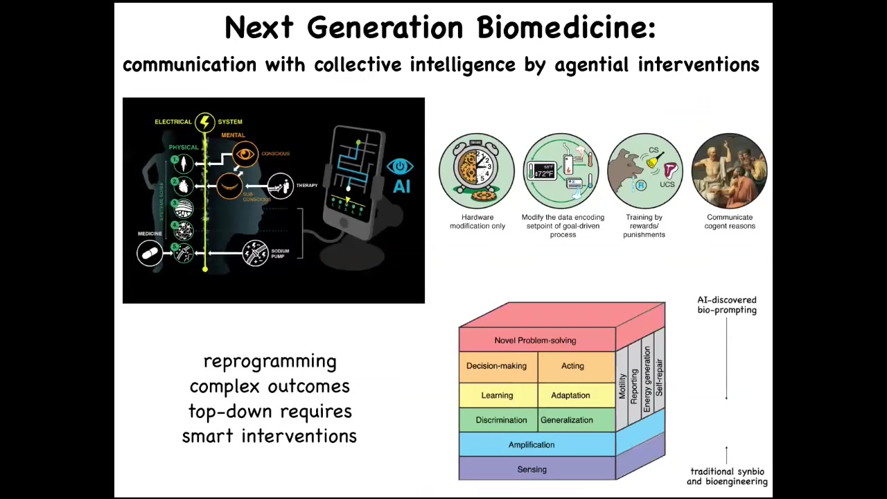 All of this now is on the table. And we've done a lot of work here on things that I've not shown you, really targeting. We've done cell training and things like that, really targeting these competencies by taking seriously the idea that intelligence is not something you can guess, but you have to discover. For that reason, I think that future medicine is going to look a lot more like a kind of somatic psychiatry than it's going to look like the chemistry of today.