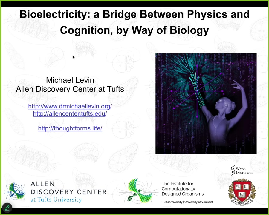 Thank you very much, and hopefully you guys can all see my slides. I'm going to talk about bioelectricity in a slightly different way than I usually do, and introduce it as a bridge between physics and cognition.