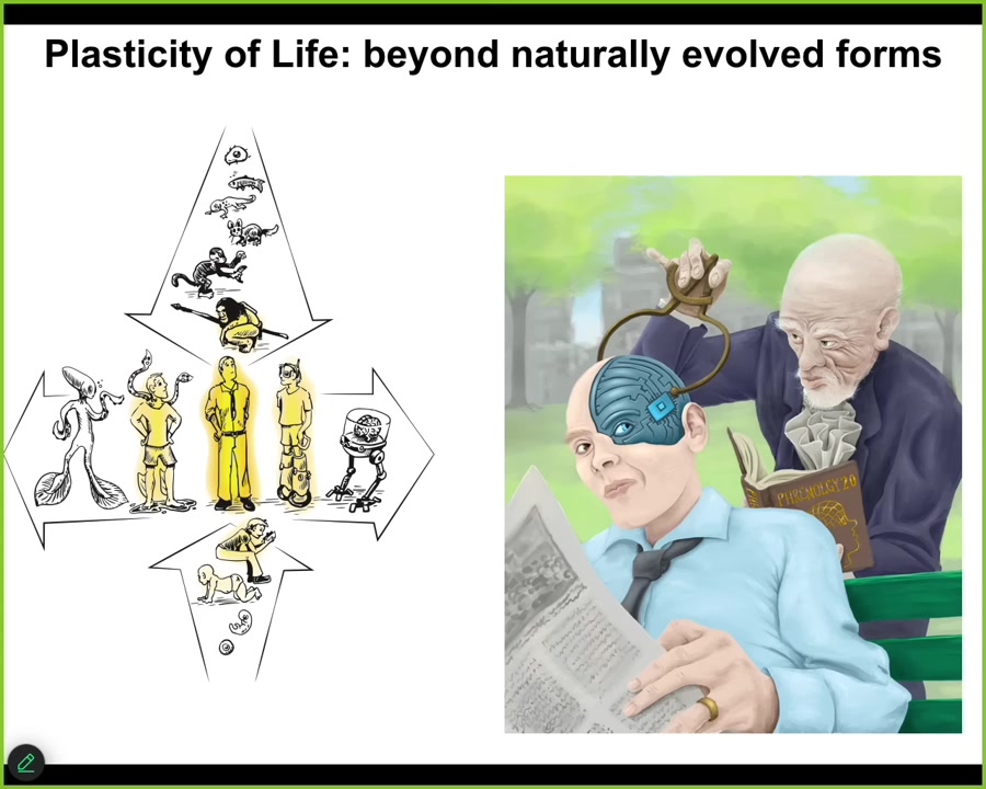We need to think beyond this. What is going to happen when humans are modified, which we are already modifying ourselves in both biological and technological ways? There's going to be an incredible variety of beings that are combinations of novel technologies with existing biological structures. We can ask, where do those goals come from? We know where the frog eye came from and the planarian head. They came from evolution acting over eons to set particular structures. But for beings like this that have never been here before, where do the goals of their tissues come from?