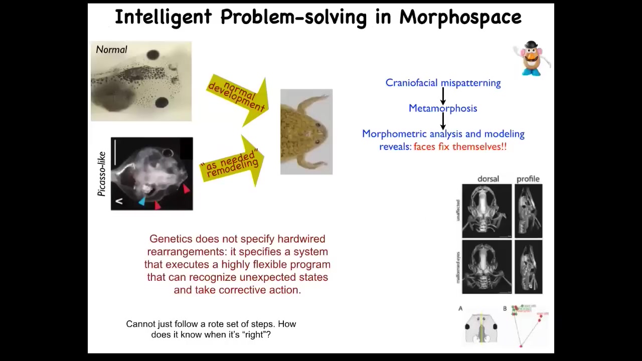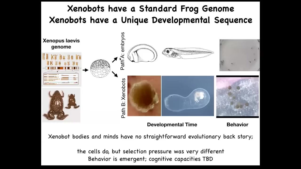 The last thing I want to show you today is a set of novel beings, because I've told you that these biological systems are exhibiting problem-solving capabilities in anatomical space. When you ask, where do the set points come from? How does it know what shape it should be? Typically, the answer is evolution, selection. In other words, if you're going to be a frog living in a ****** environment, there's really only a small set of forms and functions that will survive there and everything else died out. That's why it takes eons of selection.