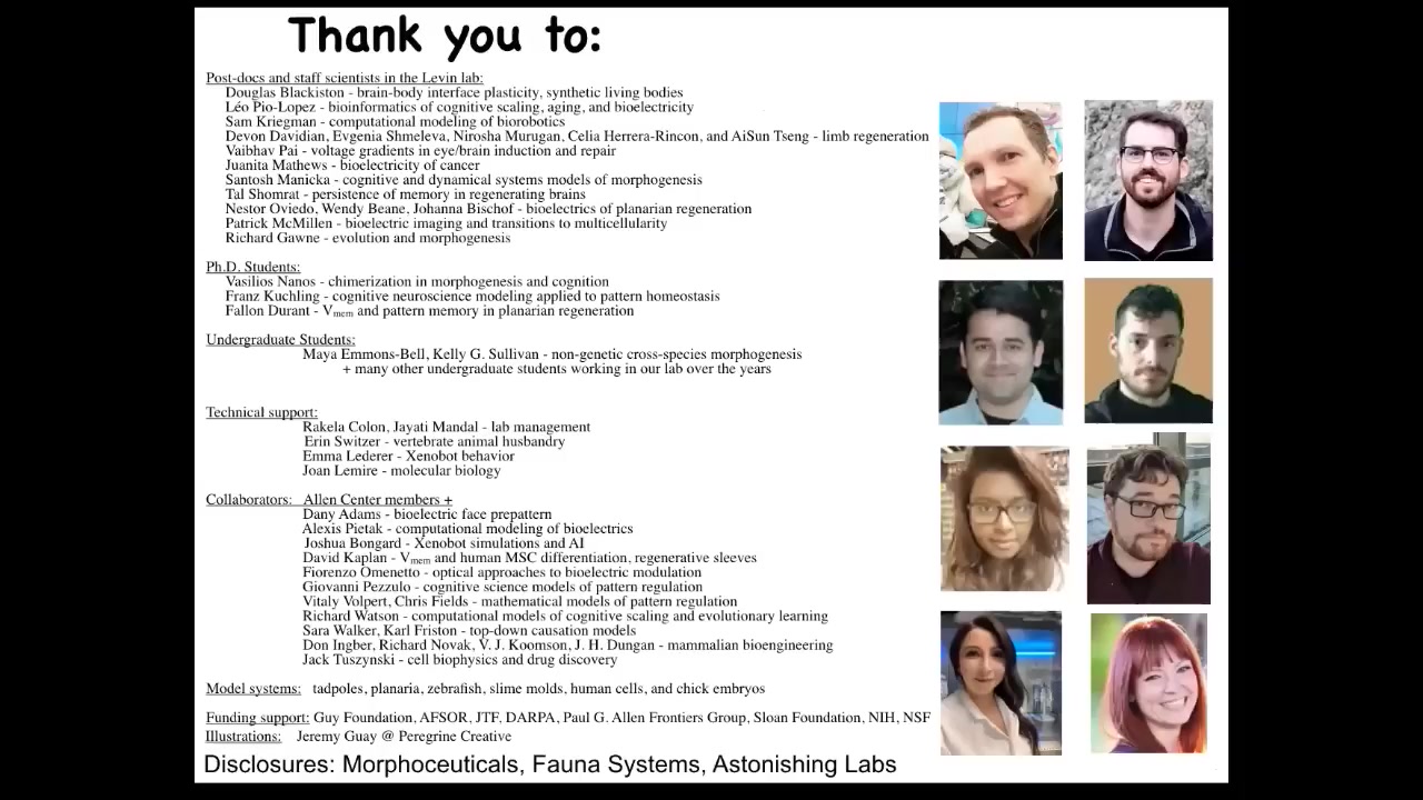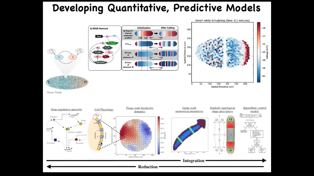 One of the things we're doing now is trying to make a full-stack model all the way from the molecular biology of ion channels to the simulation of the electrical circuits to the large-scale body-wide patterns that appear, and then ultimately in the kind of algorithmic view of this decision-making so that you can have a human-understandable set of algorithms. We want to be able to integrate the whole thing. Partly why we want to do that is for regenerative medicine applications.