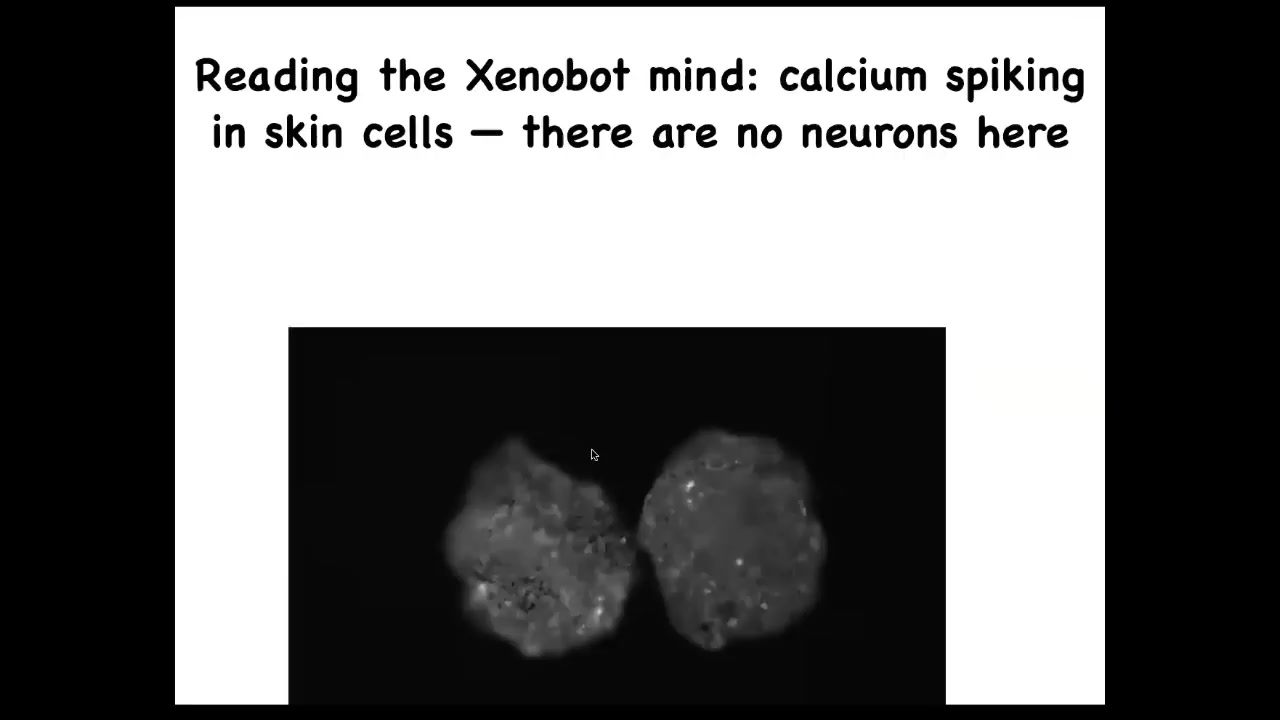 They have no neurons, but if you image their calcium signaling, which calcium is basically a readout of cellular computations, you will see that there's tons of activity and you can apply all kinds of information theory metrics to ask, are the cells talking to each other? Are these two bots talking to each other? What's the information processing that's going on here? But there's no neurons, they're just skin.