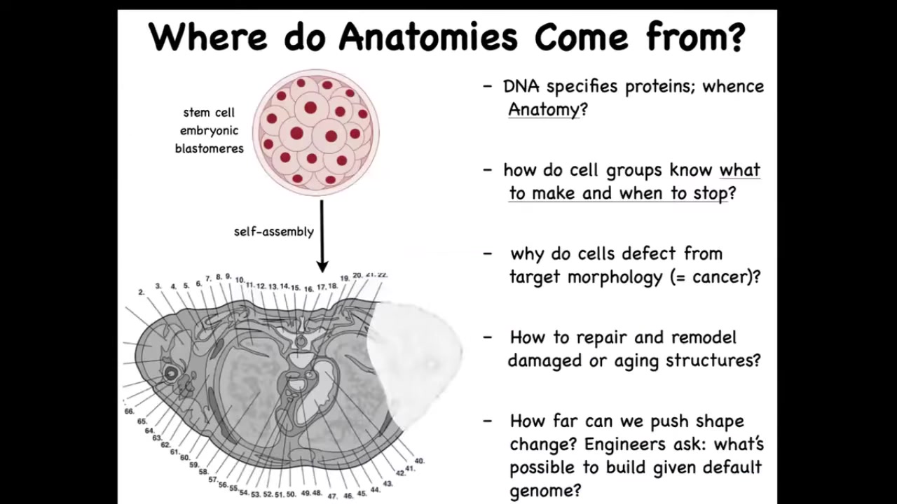 Again, we didn't have to orchestrate any of this. This competency is already in the tissue. Discovering these subroutines and discovering the various competencies and the abilities of these networks to restore the correct structure and function with minimal intervention and minimal tweaks are the name of the game here.