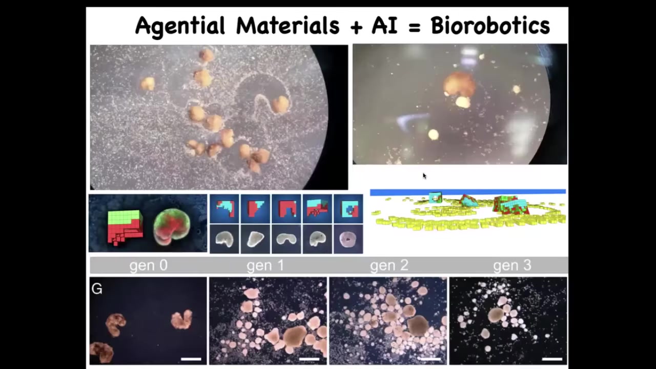 There are a few things we learned from this. One is that we can now use AI to begin to control the native behaviors, the very rich native repertoire, a very surprising repertoire that nobody had any idea that skin cells can implement von Neumann's dream, a robot that goes around and builds copies of itself from loose material it finds in the environment.
