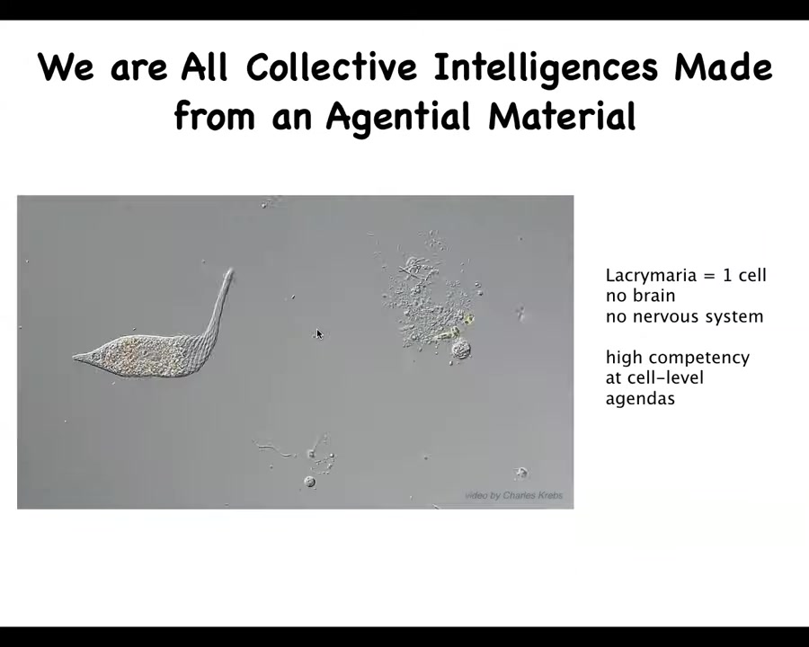 And so what's important about the way that life operates is that it's a multi-scale competency architecture that is at every level, from the molecular components to the subcellular to cells and tissues and organs, whole organisms. But also collectives and societies and so on, all of them solve problems in their own different space.
