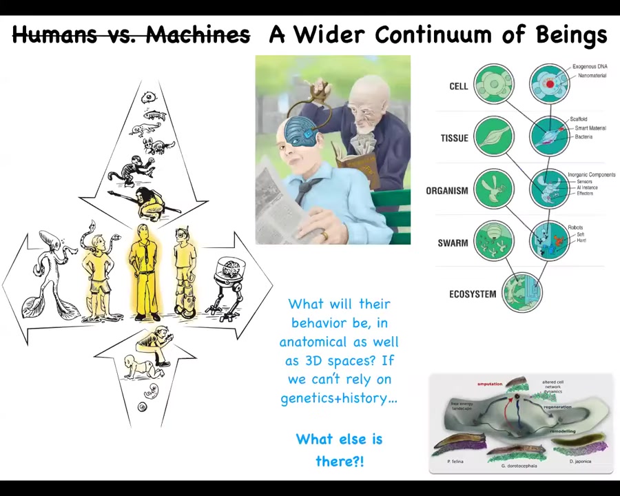 And so I think that AI is going to be a really useful translation layer, not only to the biology of the body, because this is what we're looking at. We need to be able to convert this into actionable understanding. But also to recognize all kinds of very unconventional minds, because our own mental firmware is not sufficient for that. We have a lot of mind blindness, and we're going to need tools, like we develop tools to understand other parts of the electromagnetic spectrum that we are normally completely insensitive to, and understand that it is a spectrum, that magnetism and microwaves and light and so on are all part of one spectrum. We're going to have to do the same thing for "machines" and living organisms and many things that are on that spectrum.
