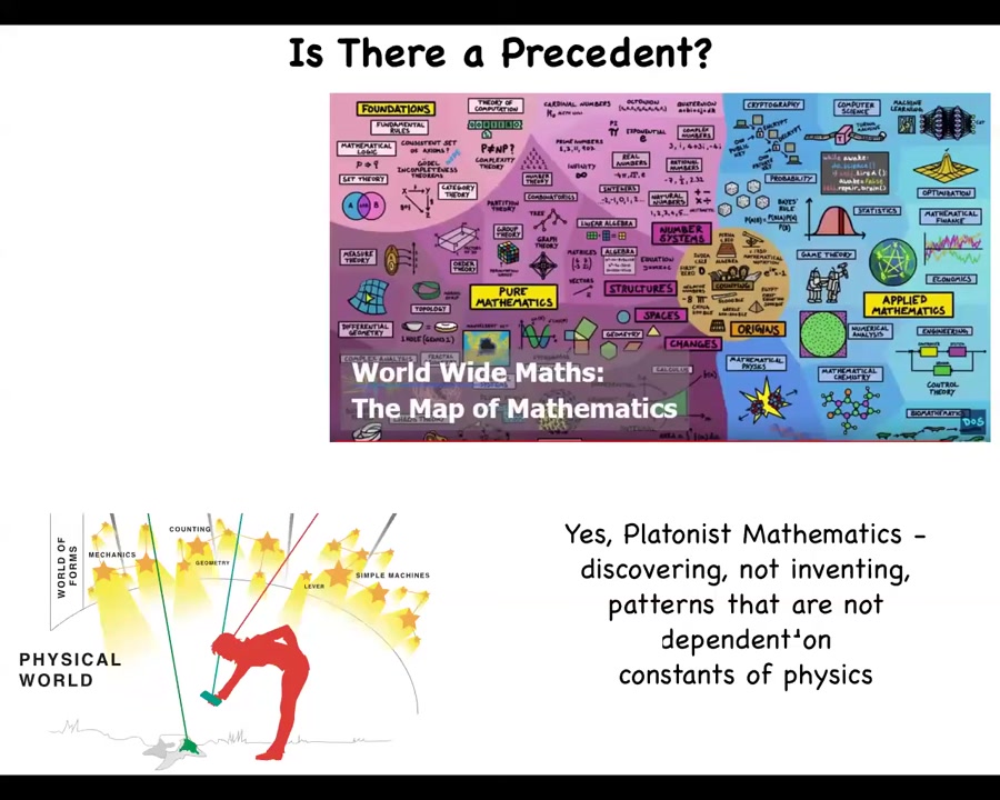 The really big conjecture here, and this is total speculation, is that Platonic space not only includes the things that mathematicians are interested in, facts about prime numbers and number theory, but actually patterns that we would recognize as kinds of minds.
