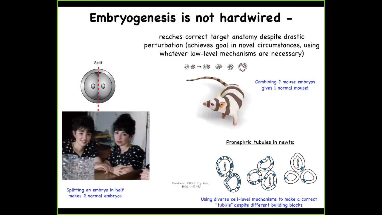 And so here is where we enter the part about bioelectricity. In thinking about developmental biology, one can start and say, OK, what type of system do we know for inspiration that has this property, that it has particular memory of goals and can pursue those goals? The obvious thing is the brain and traditional behavior. And here's the interesting thing.