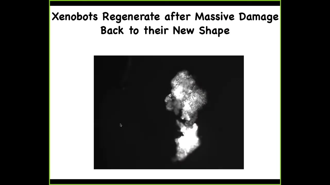 What you're seeing here is skin. These cells were selected to sit quietly on the outside of an embryo or a frog and keep out the pathogens. There was never specific selection to form a xenobot and run around and do various things. Yet within 48 hours of being placed in this novel configuration, they pull together a set of morphological and behavioral repertoires that are coherent. We're just now starting to understand: can they learn? Do they have preferences? What are their capacities?