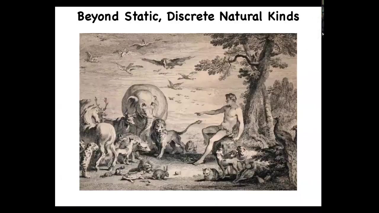 The traditional picture is shown here. This is a famous painting of Adam naming the animals. It's this old idea, which is really prevalent in a lot of thinking today, even among scientists, that there are humans and human minds. Then there are many other creatures, and these are distinct, discrete, natural kinds. They're just sharply different from each other. Humans have all sorts of cognitive capacities. If you try to look for these capacities elsewhere in the natural world, this is often called anthropomorphism: an inappropriate attribution of these magical qualities outside of the human organism.