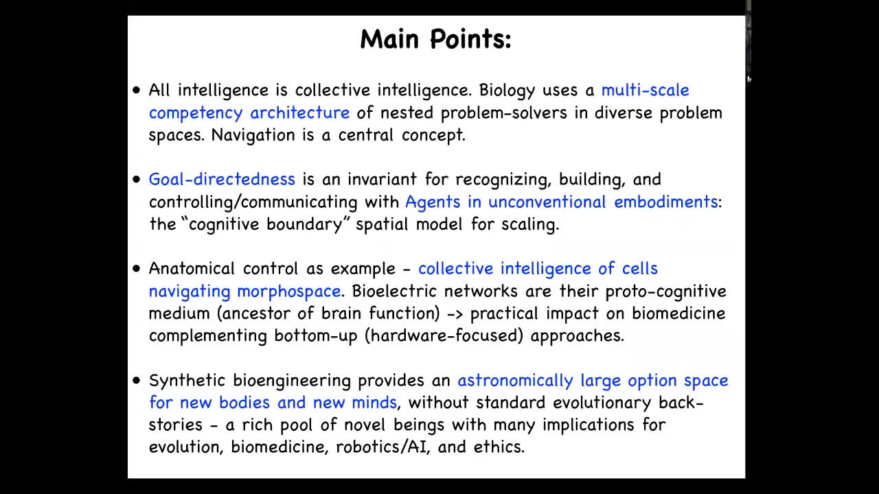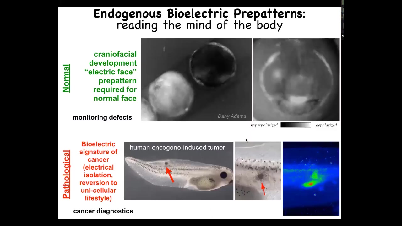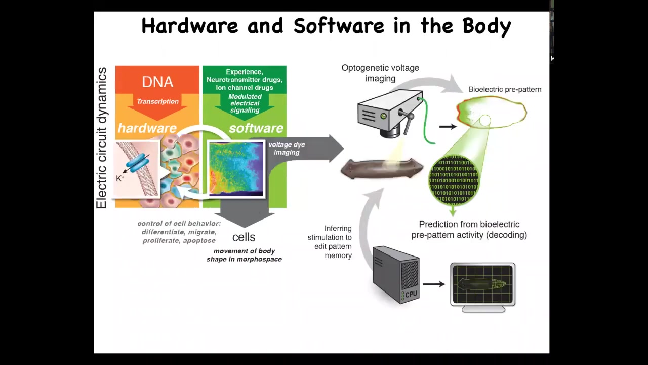 I've shown you that developmental bioelectricity is an evolutionary precursor of brain dynamics. And it's basically the physiological medium for the software of multicellular life. It's the substrate in which the cognition, the proto-cognition of the morphogenetic swarm intelligence is held, and I've shown you the examples of reading and rewriting the memories of that intelligent swarm.