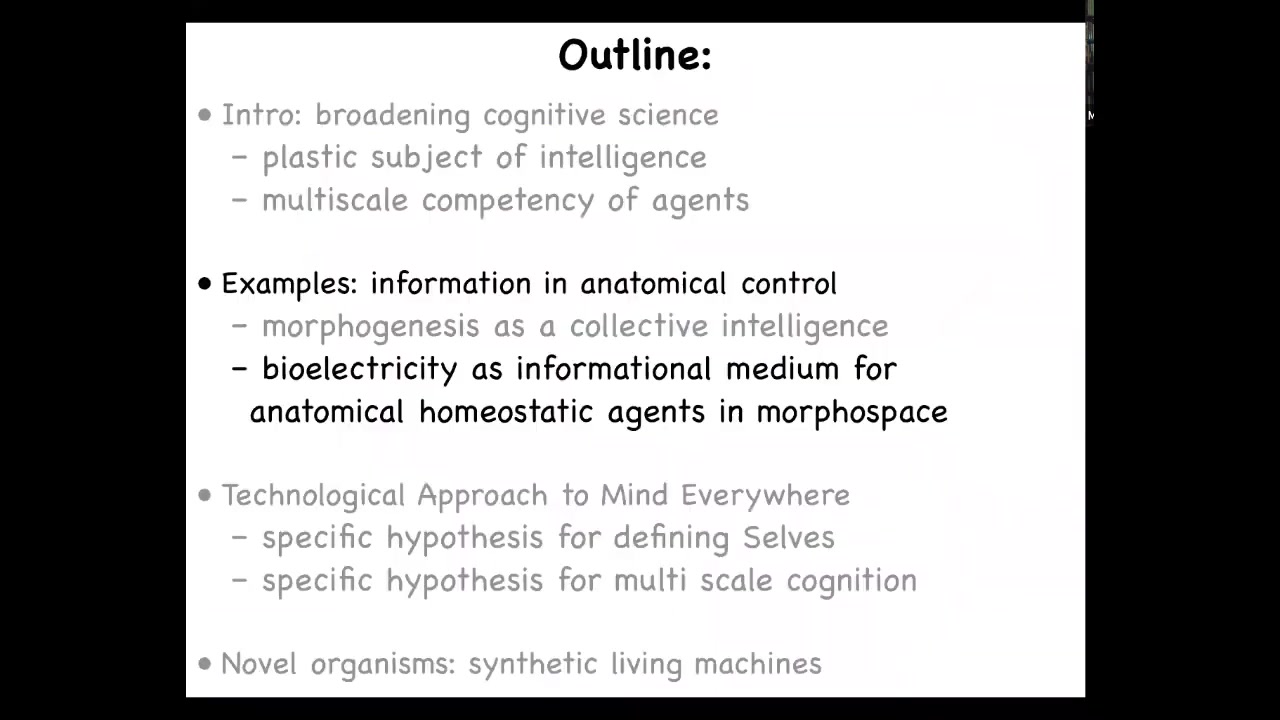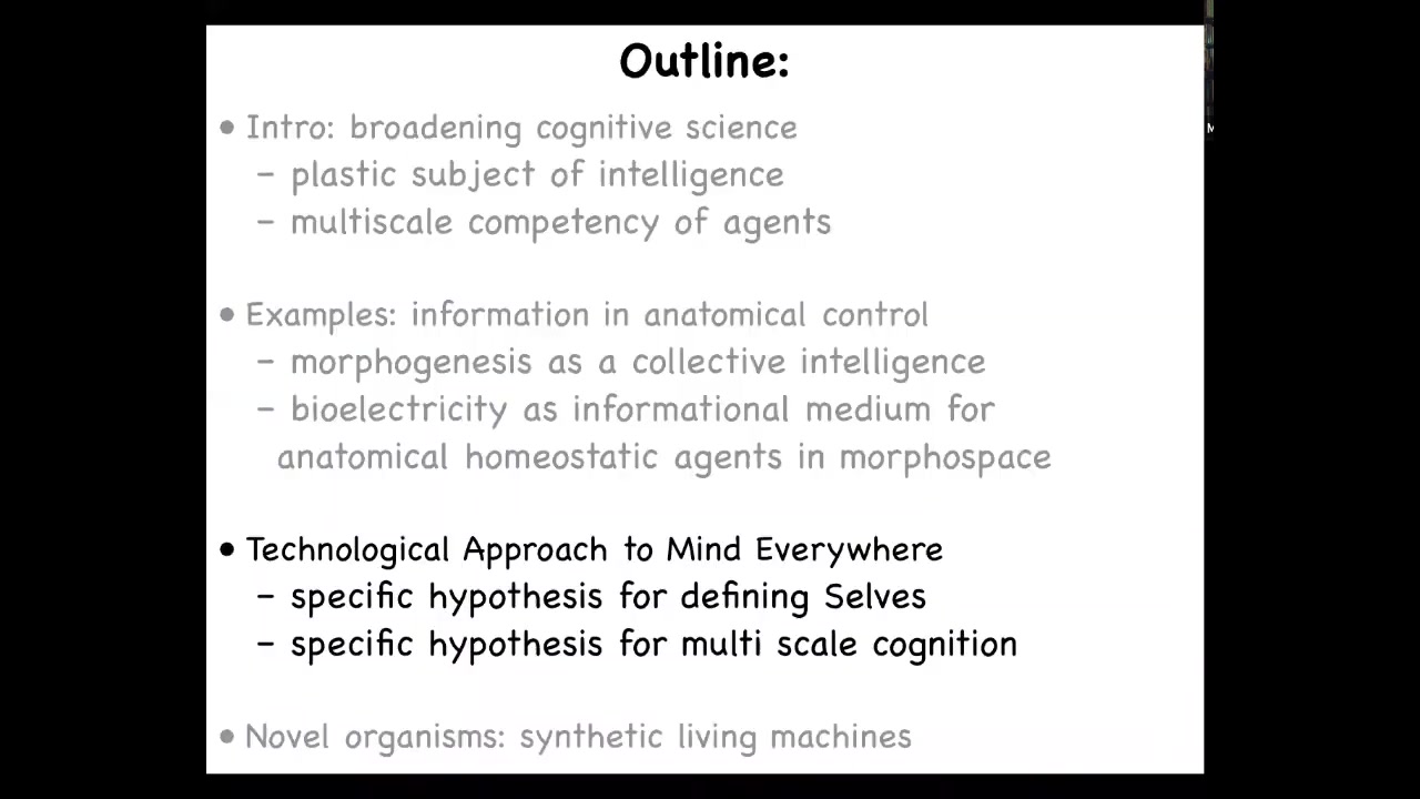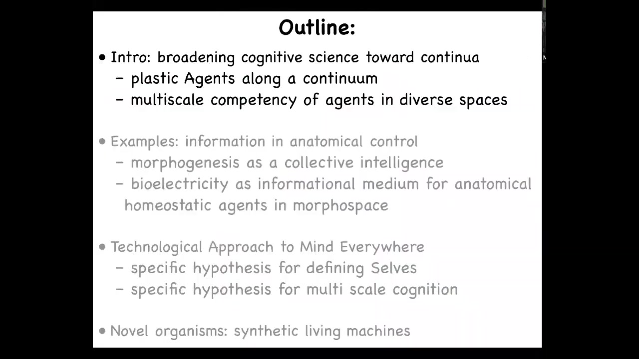 I use the notion of goal directedness, and I will define that shortly, as a kind of invariant to recognize, create, and control or communicate with agents and unconventional embodiments. I'm going to show you this cognitive boundary model for the scaling of cognition.