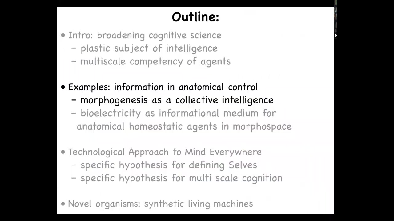 What I'd like to do next is to focus on morphogenesis and problem solving in anatomical space as a kind of collective intelligence.