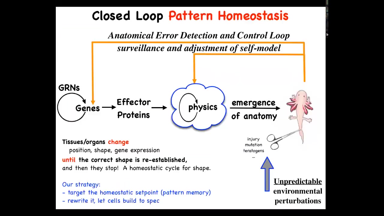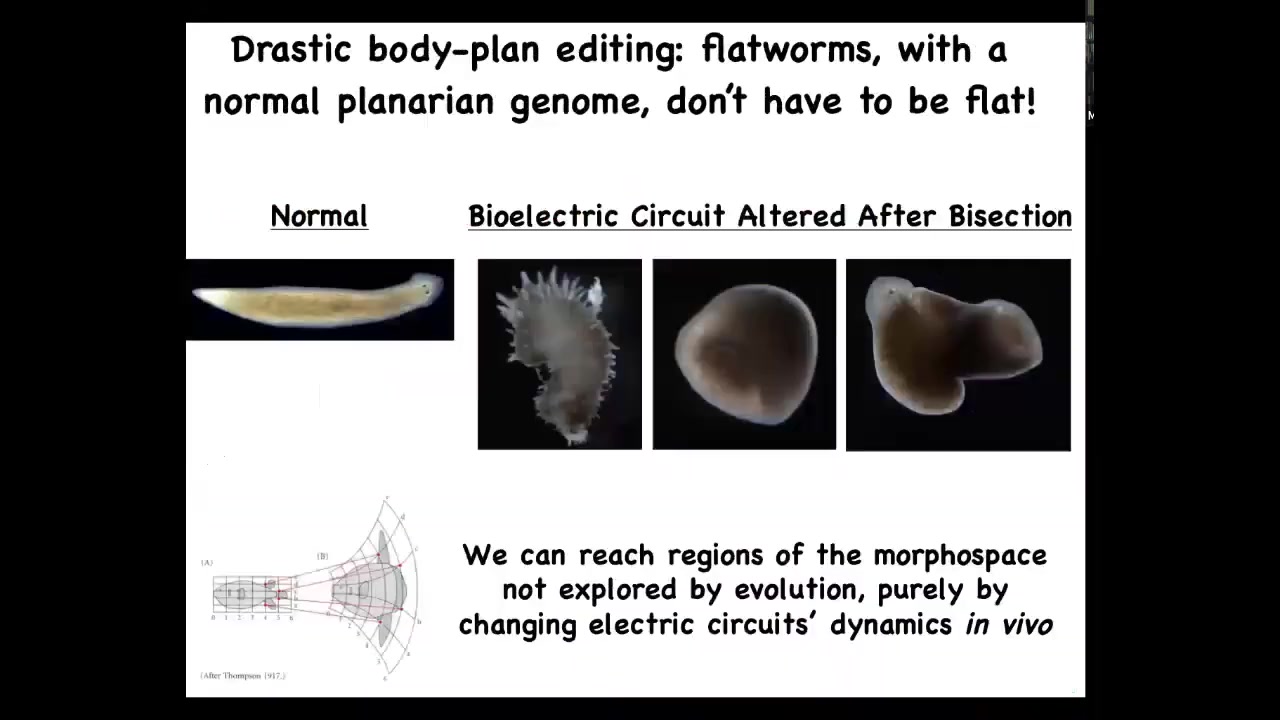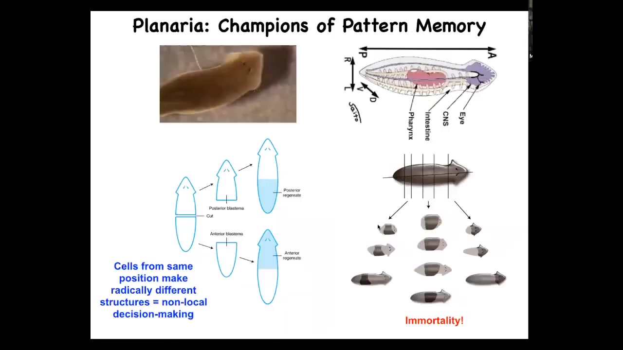 So I want to go back to this amazing creature, these planaria, and think about, try to cash out this idea that these electrical networks, much like in the brain, are storing the goals and the informational content of the collective intelligence.