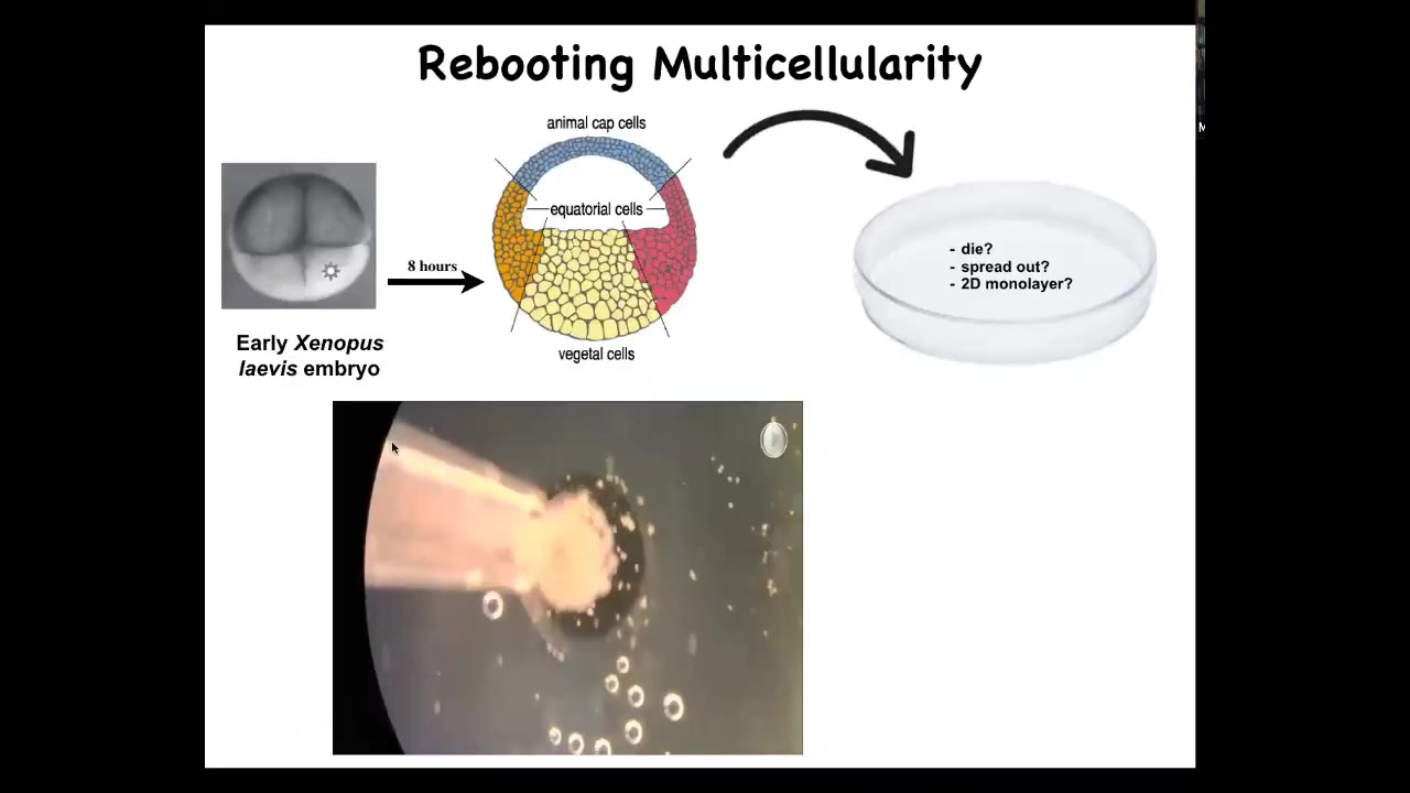 This is the experiment here. What happens is we take animal cap cells from this early frog. Doug Blackiston in my group did all the biology for this work. This was done in collaboration with Josh Bongard's lab at University of Vermont. His student, Sam Kriegman, did all the computational aspects.